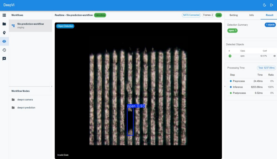 - Defect type, coordinates, and timestamp auto-saved to DB