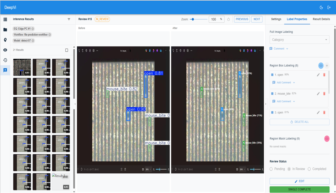 DeepVi is a No-Code, End-to-End AI Vision Platform that handles everything from data collection to model deployment and automated retraining — all within a single platform. No dedicated development team required: field operators can run the full labeling, training, inference, and review cycle themselves. It supports both on-premises and cloud deployments and provides a universal pipeline ready for immediate use across industries — including manufacturing, smart farming, logistics, and security.